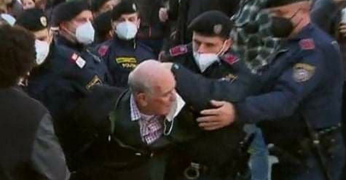 Einige Stunden später lag er am Boden, wurde dann von einer Vielzahl von Beamten abgeführt. Einem Statement seiner Tochter zufolge trug er Schürfwunden am Kopf und an den Händen, dort auch Hämatome, sowie eine Schulterzerrung, davon. Man habe ihn noch auf der Polizeiwache drangsaliert, ihn stundenlang wie einen Schwerverbrecher verhört. Da fragt man sich als unbedarfter Beobachter: Was mag ein noch so rüstiger Senior aufgeführt haben, um so behandelt zu werden?