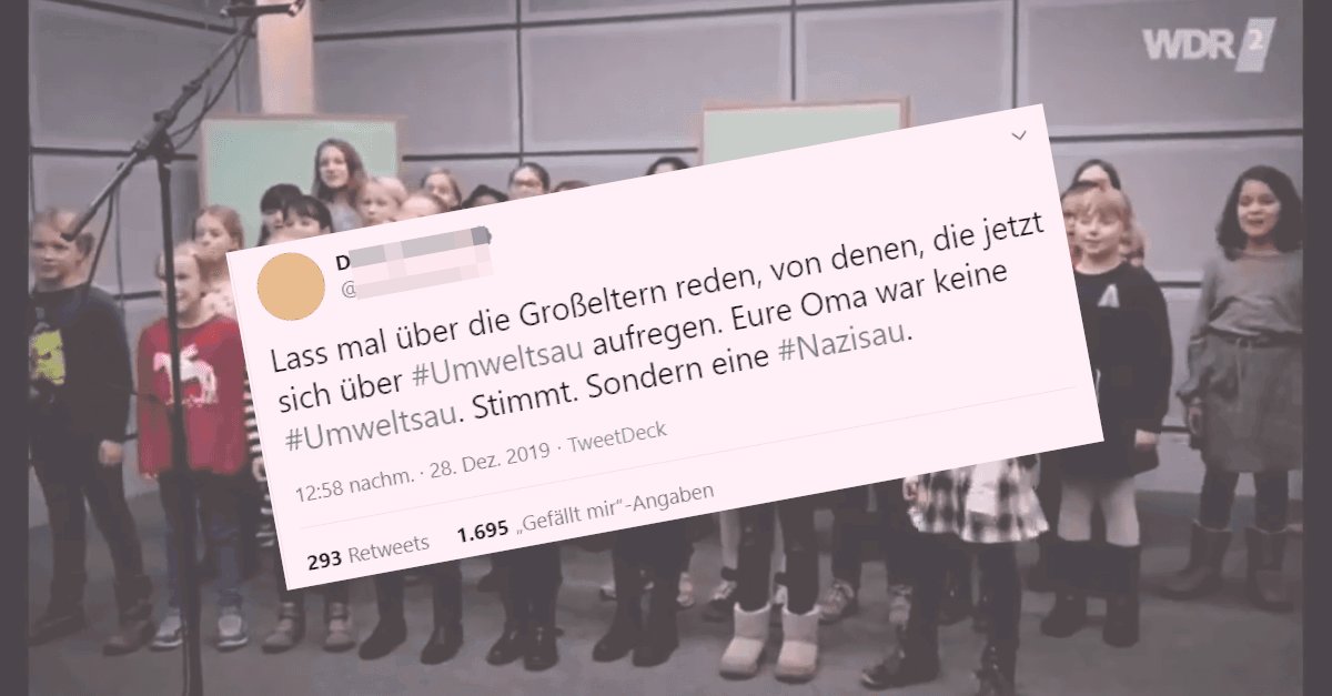 Hintergrund der Aufregung ist ein Video, das der WDR2 auf Facebook veröffentlicht hatte. Darin sang ein Kinderchor zur Melodie des bekannten Kinderliedes „Meine Oma fährt im Hühnerstall Motorrad“ einen „Satire-Text“ über das vermeintlich klimaschädliche Verhalten ihrer Großeltern. In dem Lied wird die Großmutter als „alte Umweltsau“ bezeichnet, was aktuell noch immer zu einiger Aufregung in den sozialen Medien führt.