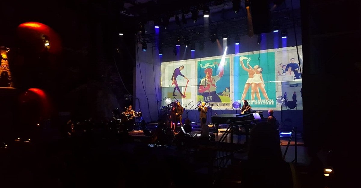 Das „Do-Re-Mi“-Sextett führte sachte mit Streichmusik in die Lieder und die Thematik ein, bis Milan Fras nach alter „Laibach“-Manier loslegte und ins Mikrofon grölte. Der Sänger Boris Benko und die Sängerin Marina Martenssons untermalten gemeinsam das Ganze mit dem Kinderchor „Edelweiss“, während im Hintergrund Screenings und Filmausschnitte ausgetauscht wurden. Propagandamaterial aus dem alten Jugoslawien und Nordkorea, Trachten, Heimatsymbole, Süßspeißen aus der traditionellen österreichischen Küche wurden genauso gezeigt wie der slowenisches Hirtenjunge „Kekec“, mit Stab und Filzhut beim Wandern in der Krain. Es war nur allzu offensichtlich, welche mehrdeutigen Assoziationen dabei entstehen sollen.