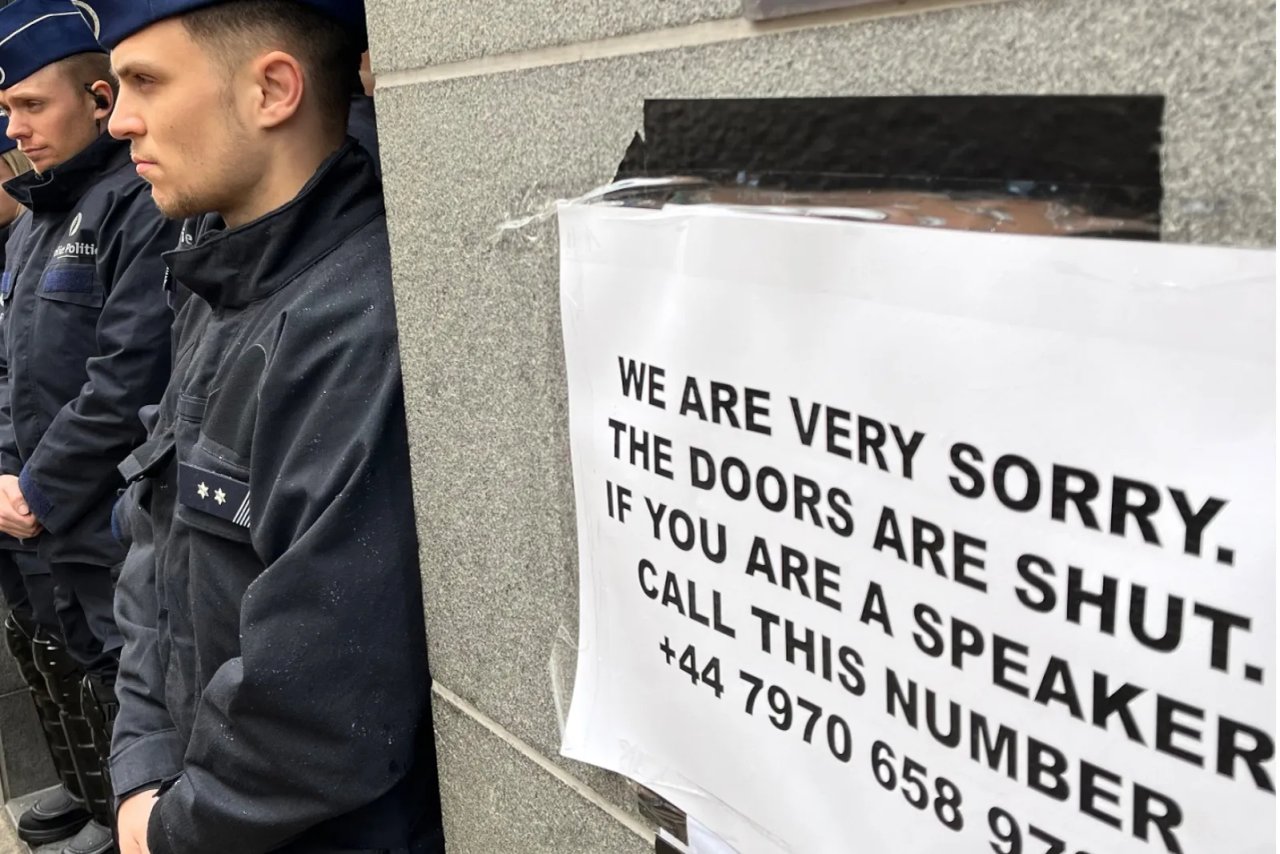 In dem Video, das Engels auf X (früher Twitter) geteilt hat, ist im Hintergrund zu sehen, wie sich Polizisten vor der Tür postiert haben. Kein Teilnehmer kam raus, keiner rein. Laut Engels konnten deshalb auch mehrere Redner das Gebäude nicht betreten, darunter Eric Zemmour und Viktor Orbán. Emir Kir, der Bürgermeister der Brüsseler Gemeinde Saint-Josse-ten-Noode, begründete das Verbot mit der Notwendigkeit, die öffentliche Sicherheit zu gewährleisten, und fügte hinzu, dass „Rechtsextreme“ in seiner Stadt nicht willkommen seien.
